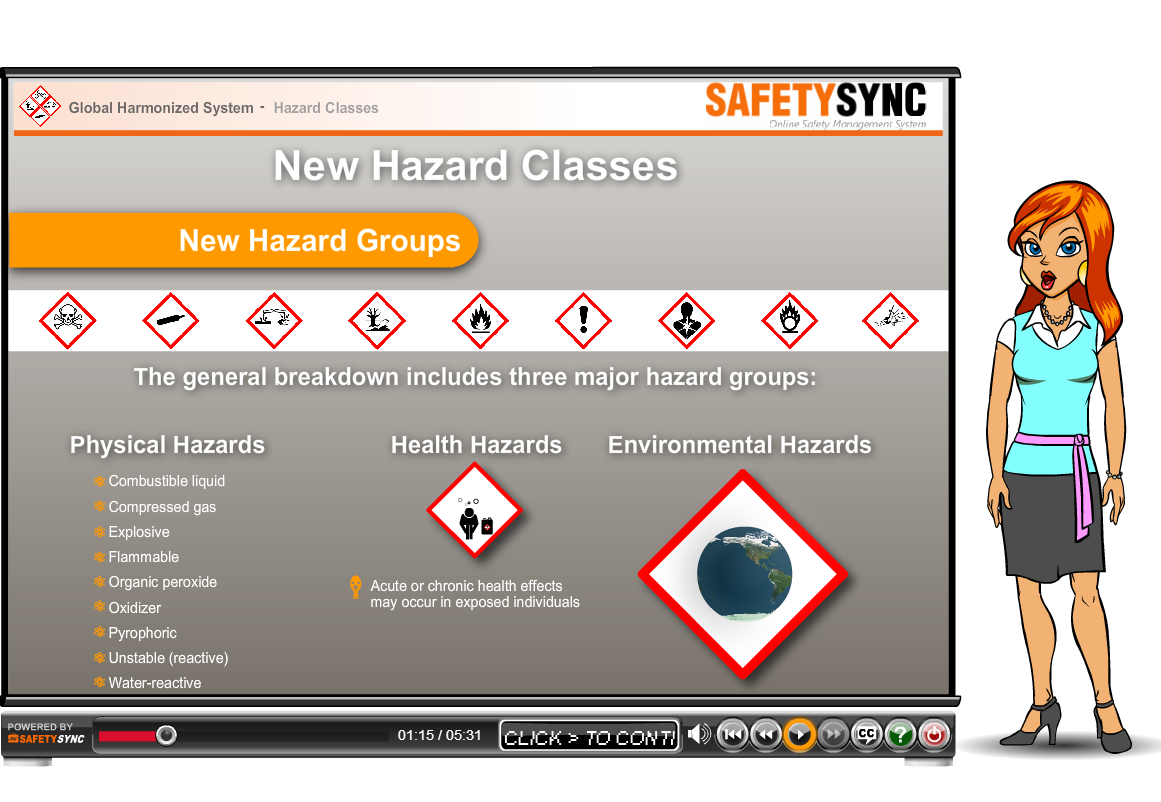 An introduction to the GHS for employees working with dangerous chemicals. GHS training is required for all employees who work with, or in proximity to Hazardous Products. This course meets the GHS legislated training requirements. This generic training may need to be supplemented with training on site-specific products.